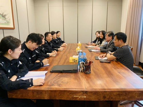 參觀(guān)結束后,出入境管理支隊一行與集團領(lǐng)導在會(huì )議室對出入境服務(wù)如何切實(shí)解決企業(yè)難題,助力企業(yè)發(fā)展進(jìn)行深入的調研交流。