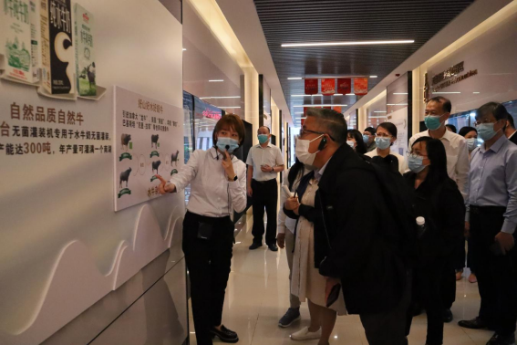中國—東盟SPS合作技術(shù)工作組與南寧海關(guān)一行觀(guān)看企業(yè)宣傳片后參觀(guān)了皇氏智能化中央工廠(chǎng)生產(chǎn)線(xiàn)。參觀(guān)過(guò)程中,何海晏副董事長(cháng)向考察團一行詳細介紹了公司在奶水牛種源培育、乳品創(chuàng )新研發(fā)、大健康產(chǎn)業(yè)和產(chǎn)品進(jìn)出口等方面取得的優(yōu)秀成果,考察團一行對皇氏集團多年來(lái)取得的成績(jì)給以肯定。