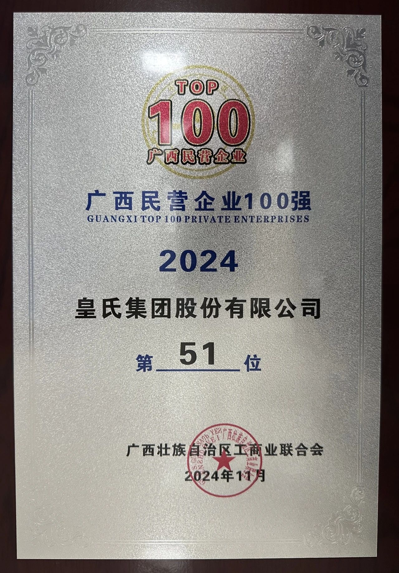 喜報!皇氏集團榮登“2024廣西民營(yíng)企業(yè)100強”“2024廣西民營(yíng)企業(yè)制造業(yè)100強”榜單!