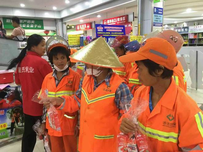 給予貴港全城環(huán)衛工人免費領(lǐng)取皇氏牛奶