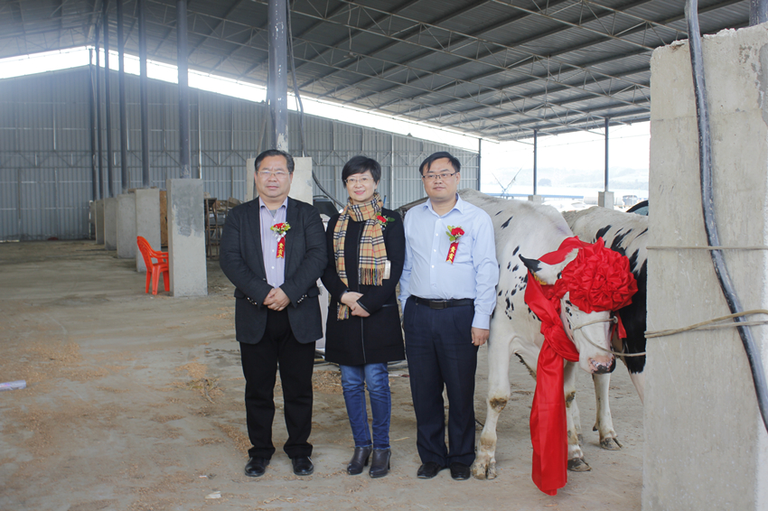 12月18日上午,皇氏集團田東自動(dòng)化生態(tài)牧場(chǎng)入牛儀式在田東縣林逢鎮隆重舉行,標志著(zhù)田東生態(tài)牧場(chǎng)項目進(jìn)入了實(shí)質(zhì)性階段,皇氏加強奶源基地建設的進(jìn)程邁出了關(guān)鍵的步伐。田東縣人民政府副縣長(cháng)葉國云丶政協(xié)副主席黃智、縣水產(chǎn)畜牧獸醫局局長(cháng)鄧建新、林逢鎮書(shū)記葛佳建和皇氏集團副總裁伍云、畜牧公司總監任彥久等出席了入牛儀式。