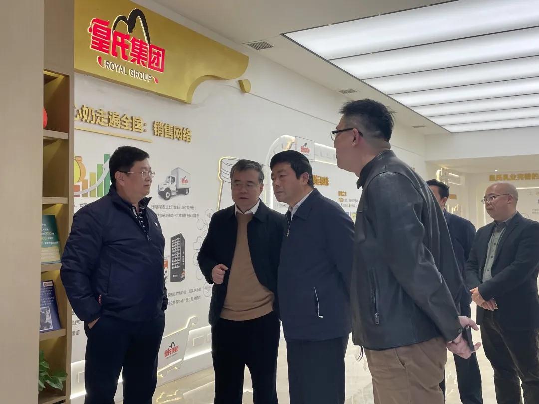 調研組一行首先通過(guò)觀(guān)看企業(yè)宣傳片了解了皇氏集團的發(fā)展歷程和業(yè)務(wù)概況,并在集團領(lǐng)導的陪同下實(shí)地參觀(guān)了華南中央工廠(chǎng)的全自動(dòng)生產(chǎn)加工車(chē)間。調研過(guò)程中,黃嘉棣董事長(cháng)向調研組一行詳細介紹了目前集團水牛奶產(chǎn)業(yè)生產(chǎn)銷(xiāo)售概況、產(chǎn)品研發(fā)實(shí)力、水牛奶科創(chuàng )研發(fā)成果以及種源戰略布局等方面的情況。