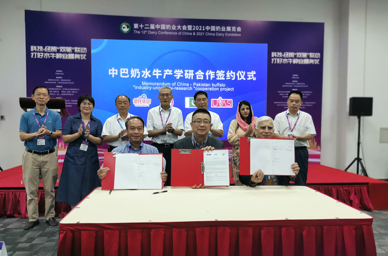 在巴基斯坦駐廣州總領(lǐng)事的見(jiàn)證下,皇氏集團、水牛研究所、巴基斯坦拉合爾獸醫動(dòng)物科學(xué)大學(xué)三方成功舉行了中巴奶水牛產(chǎn)學(xué)研合作的簽約,皇氏集團奶水牛產(chǎn)業(yè)升級項目再次實(shí)現跨越式發(fā)展!