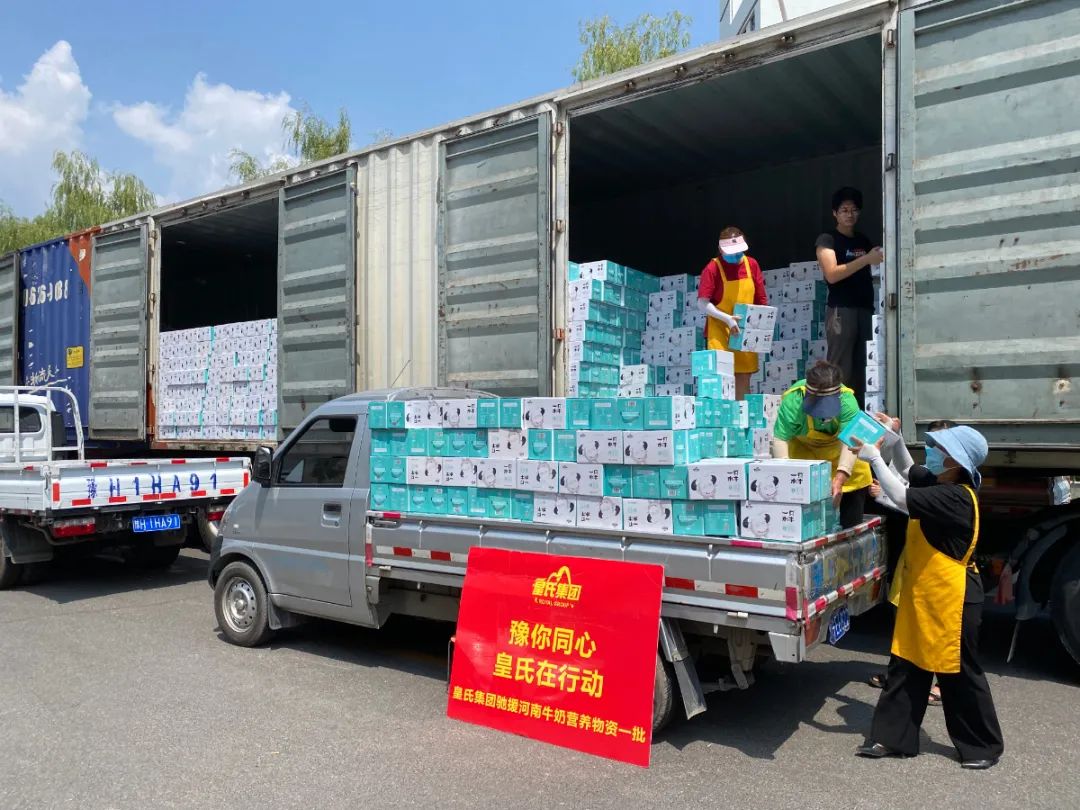 守望相助,風(fēng)雨共度?;适霞瘓F為保障災區群眾正常的飲奶需求,捐贈價(jià)值120萬(wàn)元總計25000箱牛奶,由愛(ài)心專(zhuān)車(chē)悉數運抵河南一線(xiàn)受災地區,幫助受災區群眾重建美好家園、盡快恢復正常生活,積極貢獻皇氏力量。