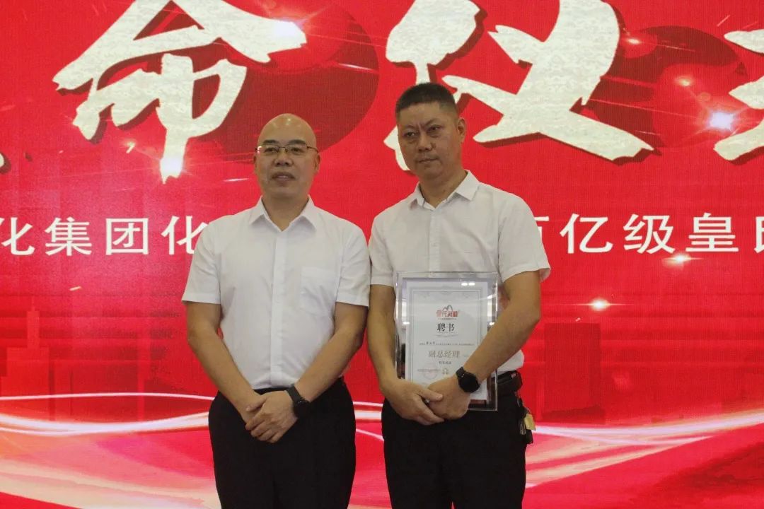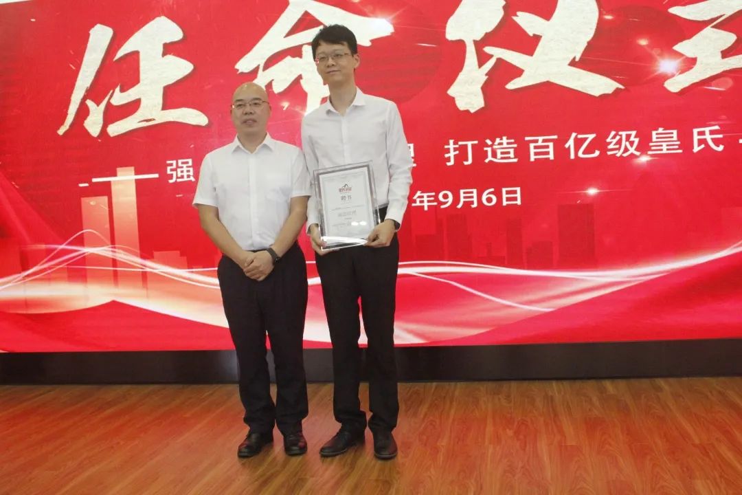 ▲王鶴飛總經(jīng)理為黃俊翔副總經(jīng)理頒發(fā)聘書(shū)