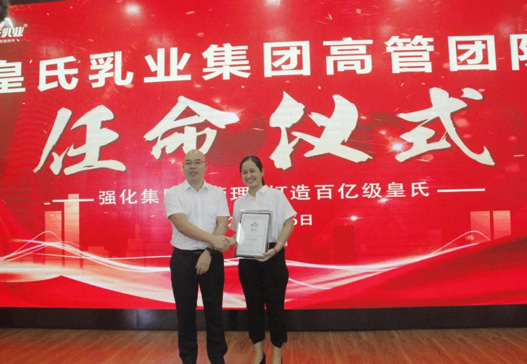 會(huì )議舉行了皇氏乳業(yè)集團成立及高管團隊任命儀式,皇氏集團黃嘉棣董事長(cháng)宣布皇氏乳業(yè)集團高管團隊任命并頒發(fā)聘書(shū)。隨后,高管團隊進(jìn)行了莊嚴的就職宣誓,誓言錚錚,激蕩在耳,表達了皇氏乳業(yè)集團高管團隊們“披荊斬棘創(chuàng )新篇 不達百億不罷休”的強大信心和堅定決心!