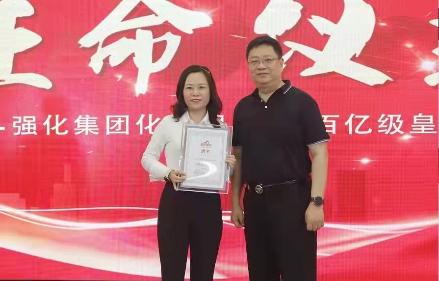 ▲黃嘉棣董事長(cháng)為孫紅霞副總經(jīng)理頒發(fā)聘書(shū)