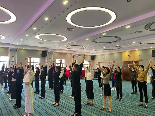 女性之美,源自健康和氣質(zhì)。自信、優(yōu)雅、從容大方,是新時(shí)代女性應有的樣子。美食盛宴之后,皇氏乳業(yè)集團人力行政部也精心為女員工組織了一堂“綻放美麗”的形體課程。一笑一回眸,一步一傾城。舒緩的音樂(lè )、優(yōu)雅的動(dòng)作讓女性員工從長(cháng)期伏案工作中舒展開(kāi)來(lái),盡情釋放肩頸腰肢的負重壓力,使得大家體態(tài)更優(yōu)美、生活更自信。