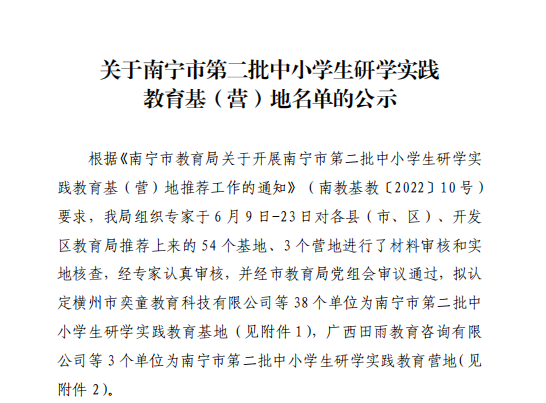 近期南寧市教育局公布了南寧市第二批中小學(xué)生研學(xué)實(shí)踐教育基(營(yíng))地名單,廣西皇氏乳業(yè)有限公司成功獲評“南寧市中小學(xué)生研學(xué)實(shí)踐教育基地”。