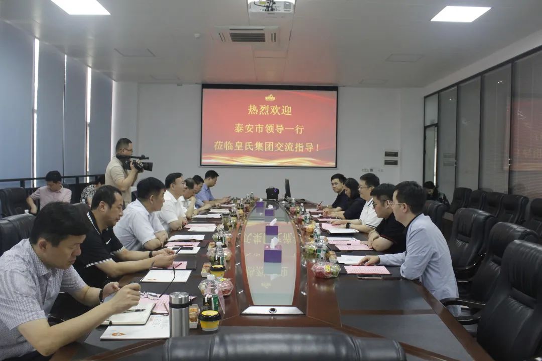 8月1日下午,泰安市委副書(shū)記、市長(cháng)張濤攜泰安市委、泰安高新區領(lǐng)導一行蒞臨皇氏集團調研對接合作項目,就進(jìn)一步深化地企合作、實(shí)現共贏(yíng)發(fā)展進(jìn)行洽談交流?;适霞瘓F董事長(cháng)黃嘉棣、副總裁楊洪軍、副總裁王婉芳等集團領(lǐng)導陪同調研。