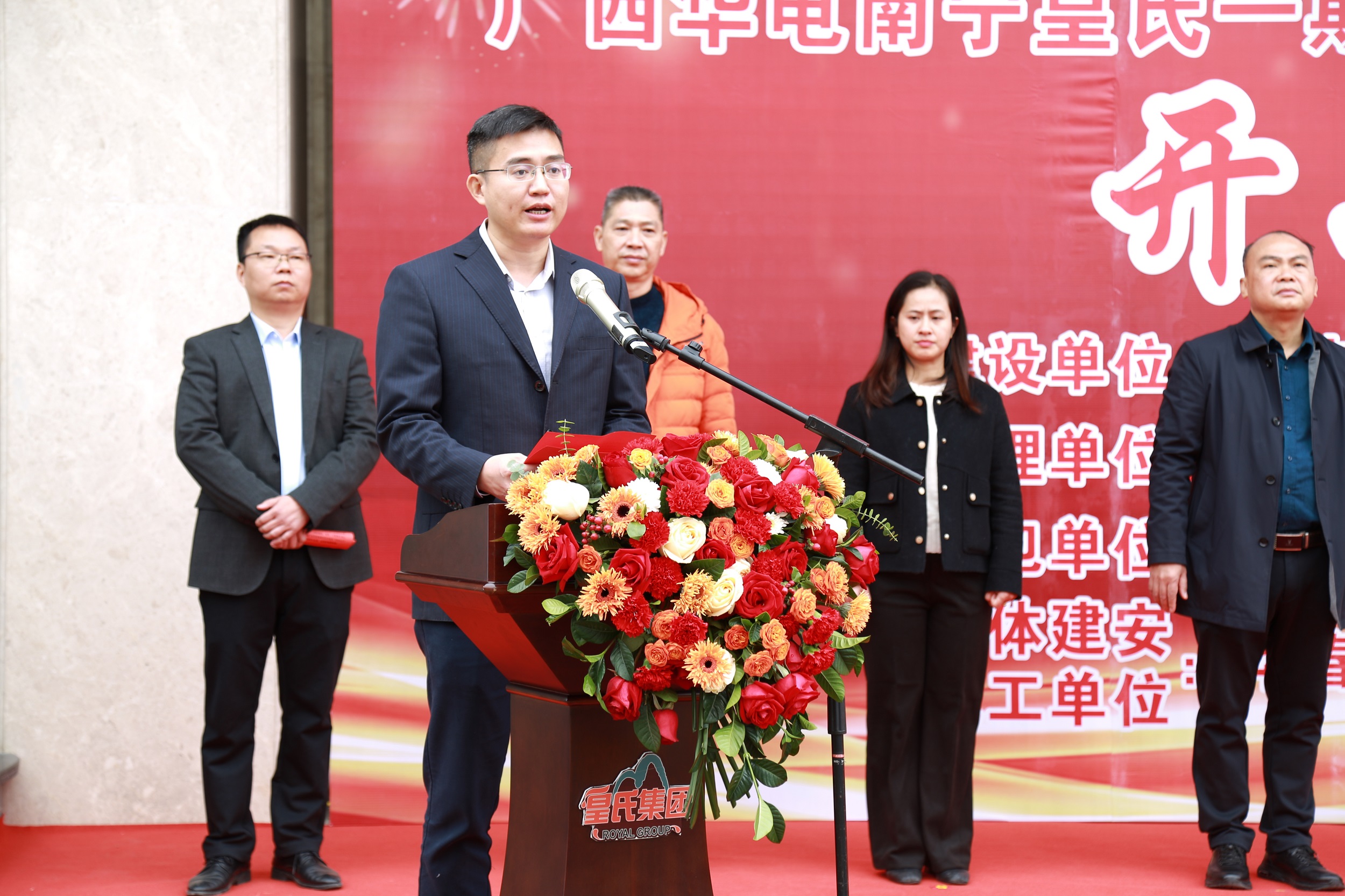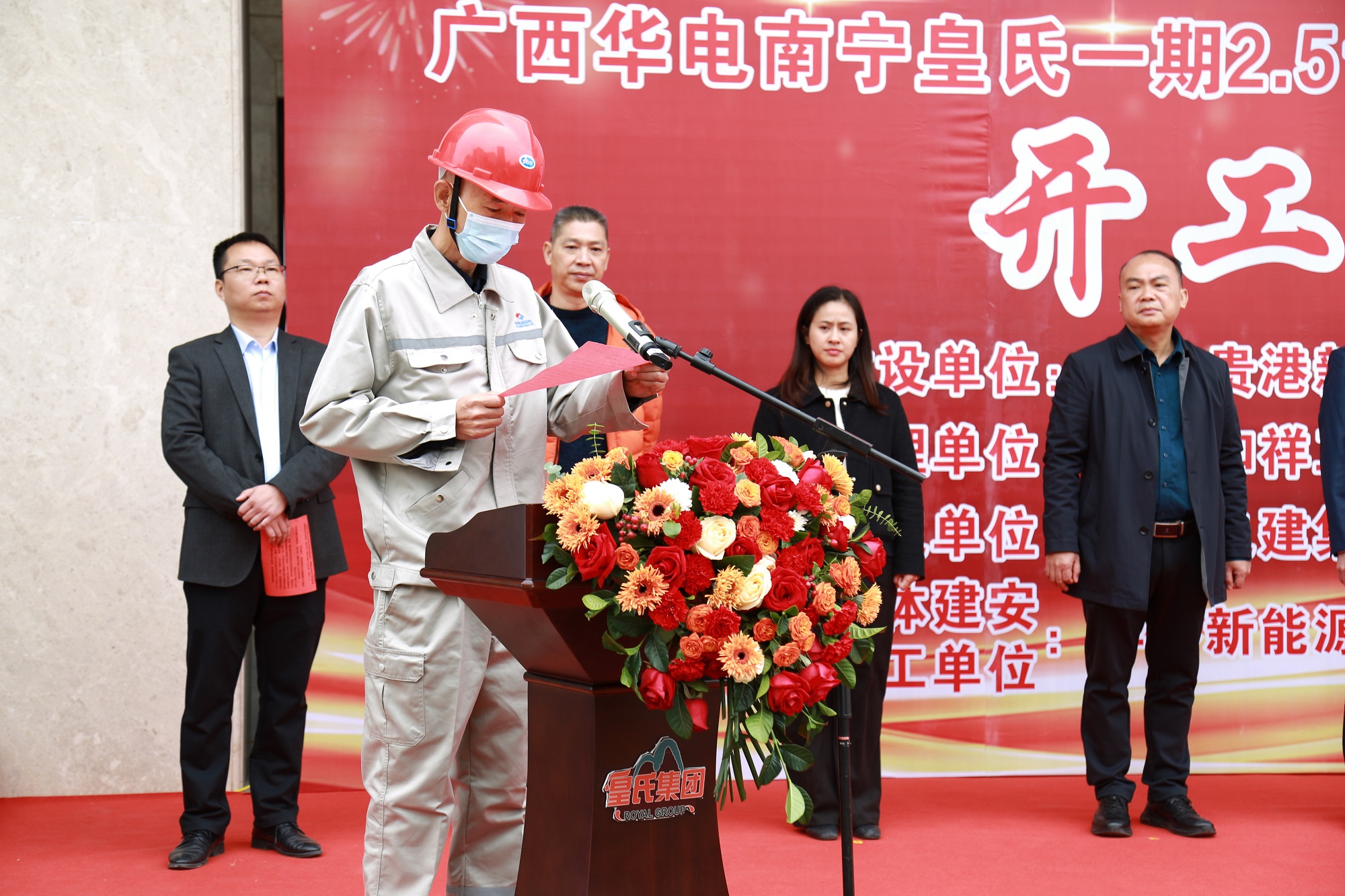 開(kāi)工儀式由華電貴港新能源公司發(fā)展部副主任黃文彪主持,南寧市發(fā)展和改革委員會(huì )代表、南寧市高新區經(jīng)發(fā)局常務(wù)副局長(cháng)梁巖,皇氏集團股份有限公司副董事長(cháng)何海晏、華電貴港新能源有限公司執行董事、總經(jīng)理林耿鋒等領(lǐng)導一行出席,同時(shí)參加儀式的還有華電貴港新能源有限公司、皇氏乳業(yè)集團有限公司、廣西皇氏乳業(yè)有限公司、皇氏農光互補(廣西)科技有限公司領(lǐng)導及各參建單位代表。