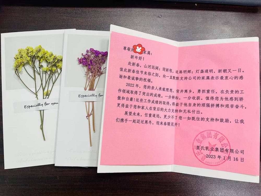 征途漫漫,共克時(shí)艱,牽手春天,縱情向前?;适先闃I(yè)集團用真情和行動(dòng)給予了外派員工家庭情感上的溫暖及精神上的鼓勵,讓外派員工及家屬在新春佳節來(lái)臨之際感受到來(lái)自公司的關(guān)愛(ài)與溫暖,用心用情構建起堅強的后方保障。未來(lái),公司將持續完善人才管理體制機制,將發(fā)展成果最大程度惠及每位員工,切實(shí)提升員工幸福指數與獲得感,構建企業(yè)高質(zhì)量發(fā)展的人才支撐。
