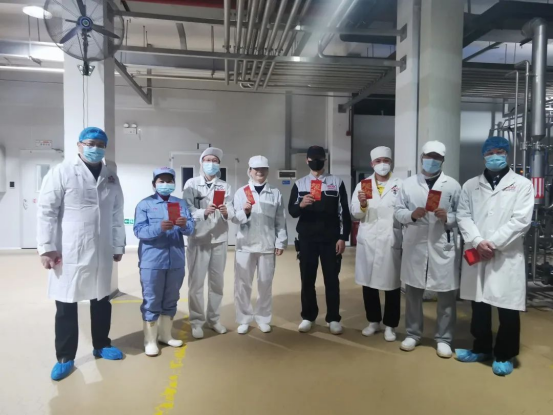 2023年1月22日,農歷大年初一,在這新春佳節喜氣洋洋的日子,皇氏集團董事長(cháng)黃嘉棣、副董事長(cháng)何海晏、乳業(yè)集團副總經(jīng)理農素貞、廣西皇氏乳業(yè)生產(chǎn)總監王大興等領(lǐng)導一大早就帶著(zhù)對員工的深切牽掛和關(guān)懷,深入廣西皇氏乳業(yè)生產(chǎn)車(chē)間一線(xiàn)開(kāi)展慰問(wèn)活動(dòng),向節日期間仍然堅守在生產(chǎn)車(chē)間、中控室、員工食堂、倉庫等工作崗位上的員工送去節日的問(wèn)候和美好的祝福。